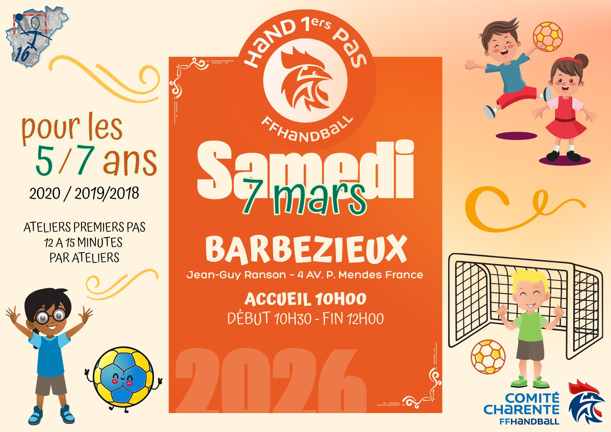Pour les 5/7 ans (nés en 2020/2019/2018) Samedi 7 mars 2026à BARBEZIEUX, gymnase JG Ranson, av. P. Mendez France Déroulé…
