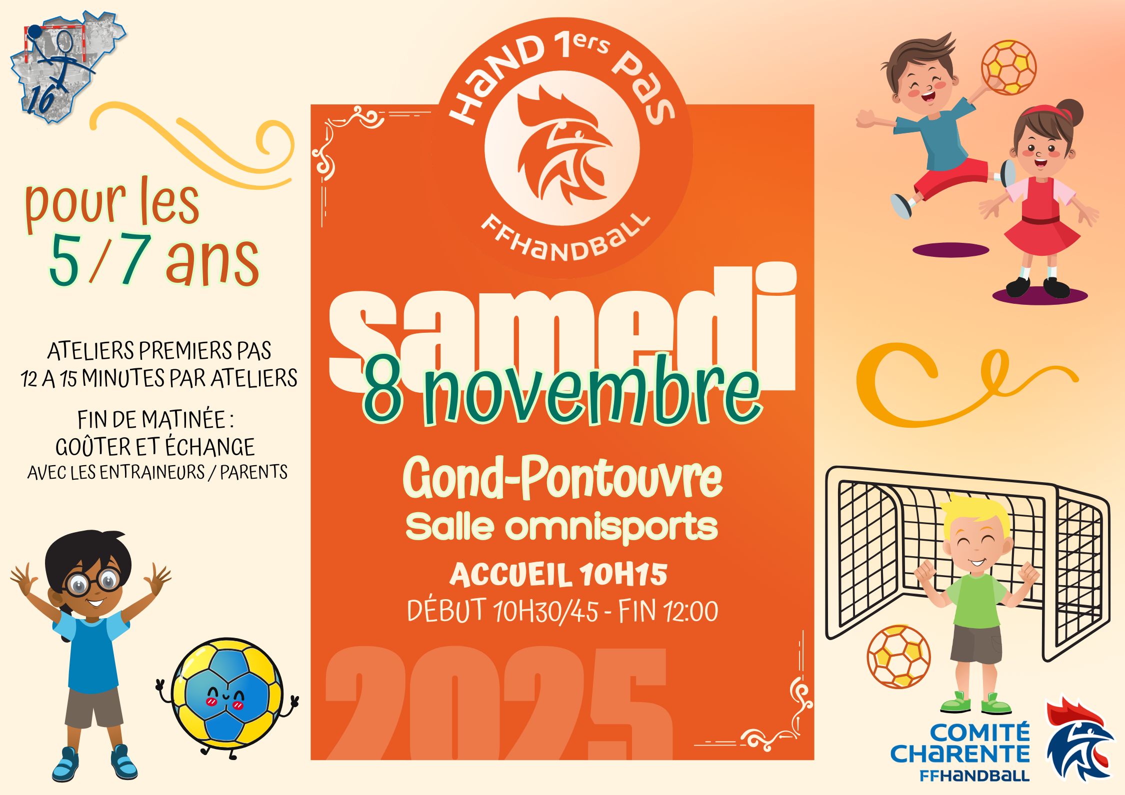 Pour les 5/7 ans Samedi 8 novembre 2025à Gond-Pontouvre, salle omnisports Déroulé :Accueil 10h15 – Début 10h30/45 – Fin 12:00–…